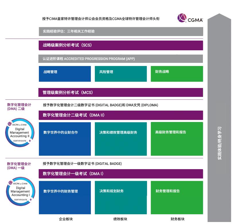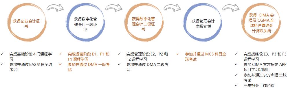 随着全球进入数字经济时代,数字化转型对社会、生活、经济影响深远。财务职能下一个革新将成为一个“数据驱动的决策中心”,财务人员将会更加侧重于运用数据来推动决策和业务支持。鉴于此,CIMA携手中国国际人才交流基金会引入数字化管理会计(Digital Management Accounting, 简称DMA)项目。CIMA课程涵盖了DMA课程大部分内容。CIMA方向班可选择快速进阶通道。