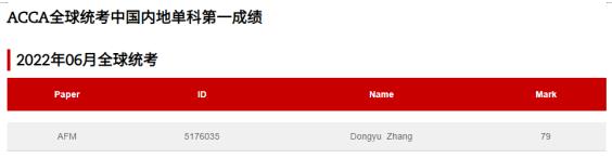 近日,ACCA中文官网公布喜讯,英国365集团网站20级ACCA方向班张冬语同学在2022年6月举办的ACCA全球统一考试中,以79分的成绩获得Advanced Financial Management( 简称AFM)科目的中国内地第一。截至2022年6月考季,张冬语已经累计通过11门ACCA全球统一考试。