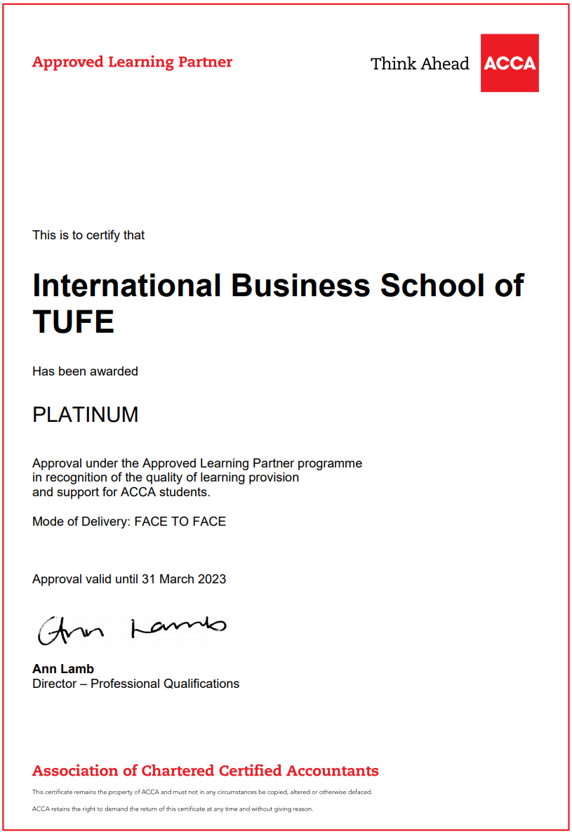 公司ACCA办学成果获得世界瞩目。先后十年获得ACCA总部认证的世界最顶尖白金级教育机构资质,是国内首家ACCA团队培训基地,荣获ACCA中国卓越教育机构奖。11名员工荣获ACCA全球统考中国内地第一,1名员工获ACCA准会员总分中国内地第一。在历届“ACCA就业力大比拼”赛事中,4次进入全国总决赛,1次获得冠军,1次获得季军。3次获得区域决赛冠军,2名员工揽获最佳个人奖。
