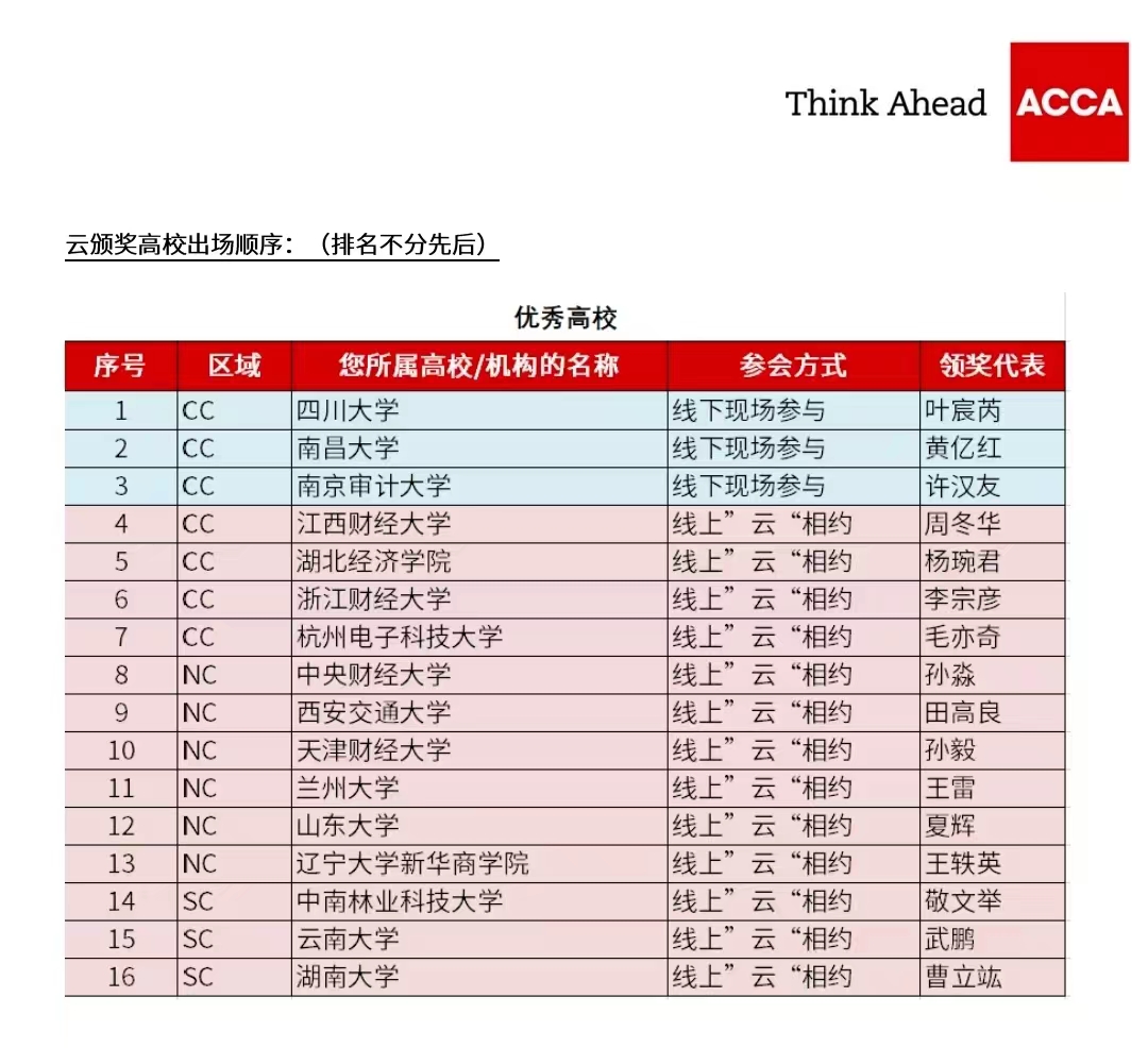 会上进行了“ACCA优秀高校”颁奖仪式。奖项旨在表彰2022年度在ACCA教育领域取得突出业绩的高校,全国共有包括公司、四川大学、中央财经大学在内的16家高校入选。英国365集团网站副经理孙毅作为代表参加了“云颁奖”。