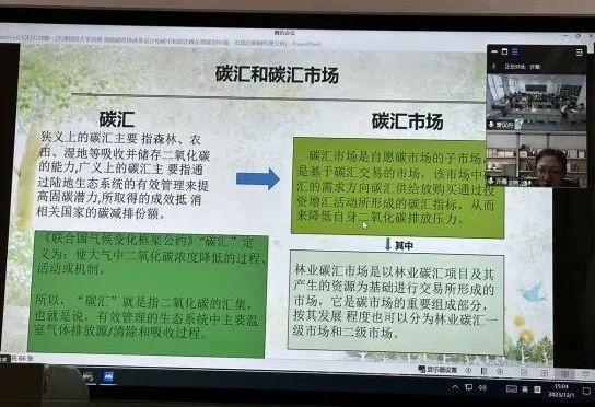 在企业层面,许教授列举出林业碳汇技术路线,说明了碳汇资源是如何转化为碳收益并带给企业实际利益;许教授还为我们讲解了关于碳汇、碳汇市场等相关概念。