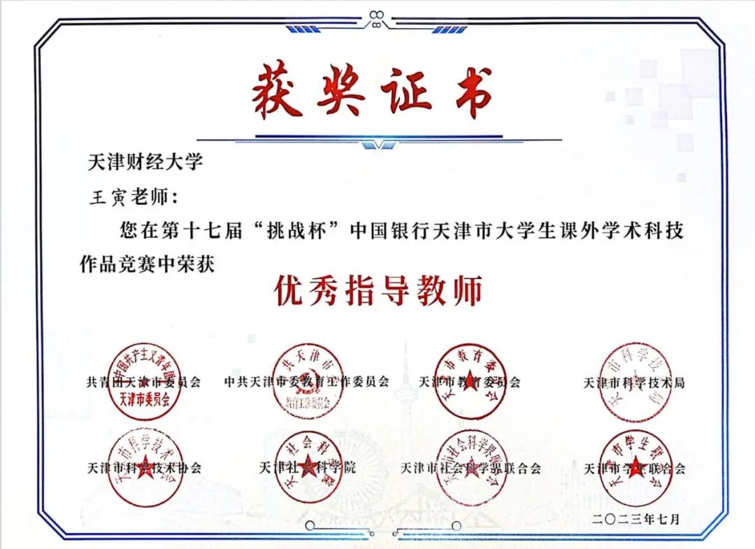 此外,王寅老师获“优秀指导教师”。