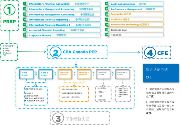 加拿大特许专业会计师协会(CPA Canada)是卓越的、享誉全球的商业和会计专业协会,其开发的会计基础教育课程(Preparatory course,简称PREP)和专业教育项目(Professional Education Program,简称PEP)满足不同起点,不同理想员工的需要。