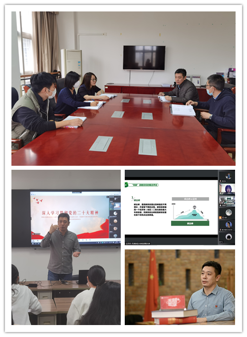 党的二十大召开以来,教工党员们积极学习党的二十大精神,贯彻落实到教书育人实践中:(1)开展主题为“深入学习贯彻党的二十大精神,引导本科生的科研活动”系列学术沙龙,活动第一期重点围绕“中国式现代化”展开阐释,根据党的二十大会议提出的新战略、新举措,坚持守正创新、问题导向、系统观念,不断提出真正解决问题的新理念、新思路、新办法,以期为“基于国情的中国特色”学术研究增砖添瓦。引导员工牢记科研的价值在于服务社会、促进社会进步和发展,紧扣时代脉搏,科教兴国助力中国式现代化。(2)教师团队组织党的二十大精神进课堂研讨,将价值塑造、知识传授和能力培养融为一体,显性教育与隐性教育相统一,实现“三全”育人。由教师教学创新大赛一等奖获得者王丹丹老师分享双语课程融入党的二十大精神的切入点,结合所授课程特点、思维方法和价值理念,深挖课程思政元素,有机融入课程教学。(3)公司教工党支部书记孙毅作为公司“天财思享+”短视频宣讲团成员,将党的二十大精神带入到“网络思政课堂”,立足财经专业特点,结合自身学术理论研究能力,用“接地气”的“网言网语”为青年员工解读“人与自然和谐共生”和“绿色发展”。