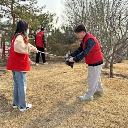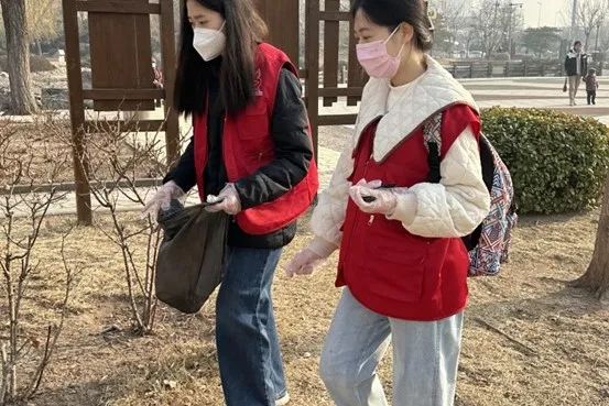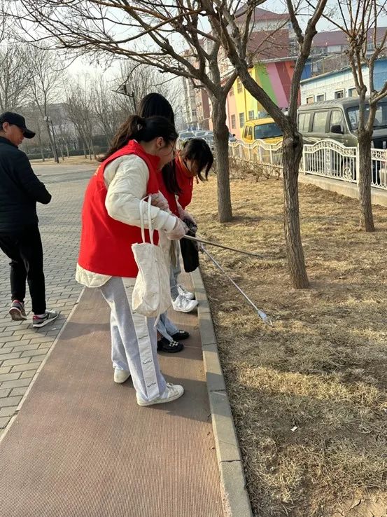 除了清整居民区内部环境,员工党员们还来到了社区居民日常活动的小型公园。他们分组行动,捡拾道路两旁及草坪中的烟头,河道两旁堆积的塑料袋等垃圾。