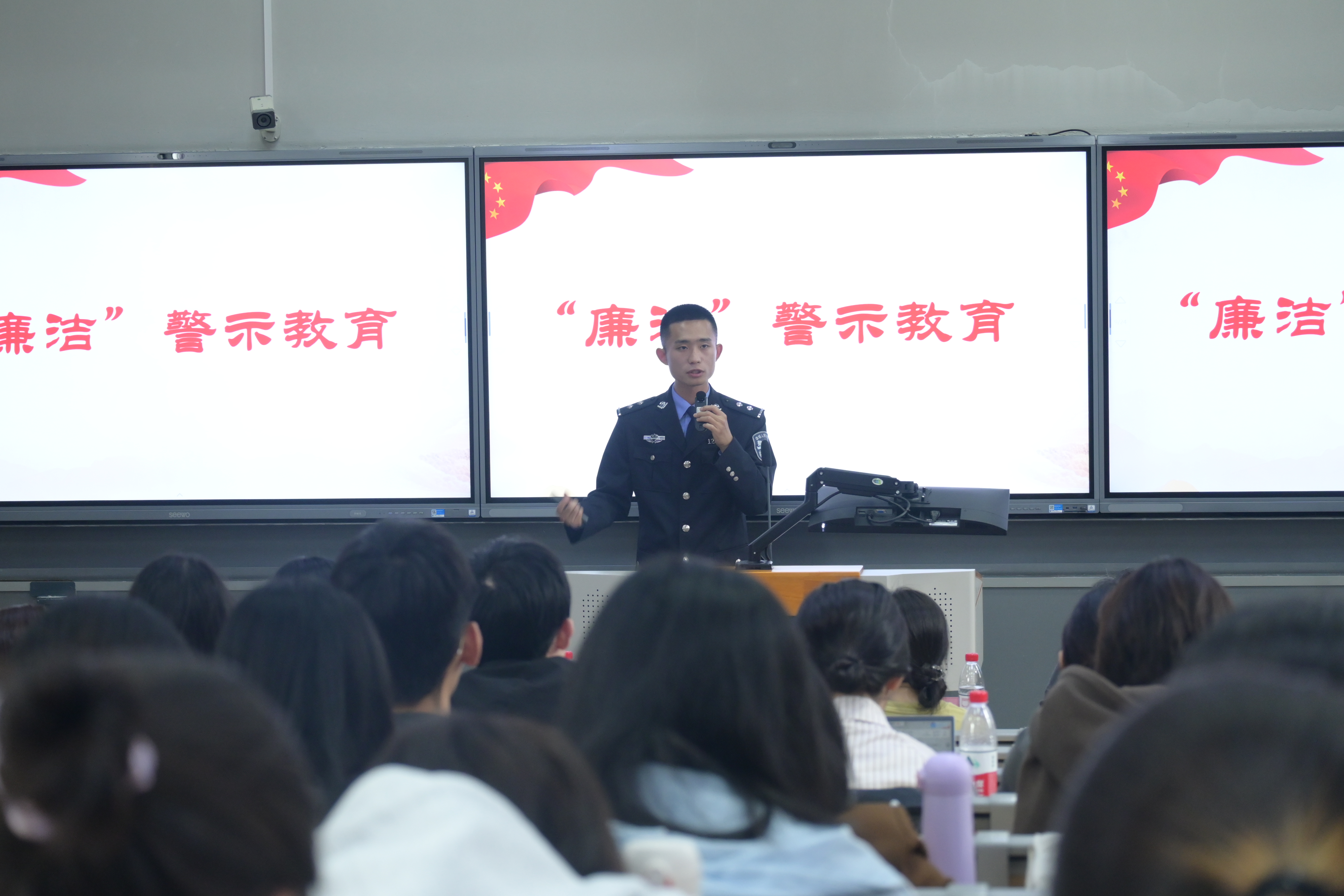 廉洁警示教育方面,孙警官结合深入贯彻中央八项规定精神学习教育,结合公司财经类专业特色,深刻剖析金融领域腐败及“四风”问题表现形式,引领师生树立清廉金融自觉。