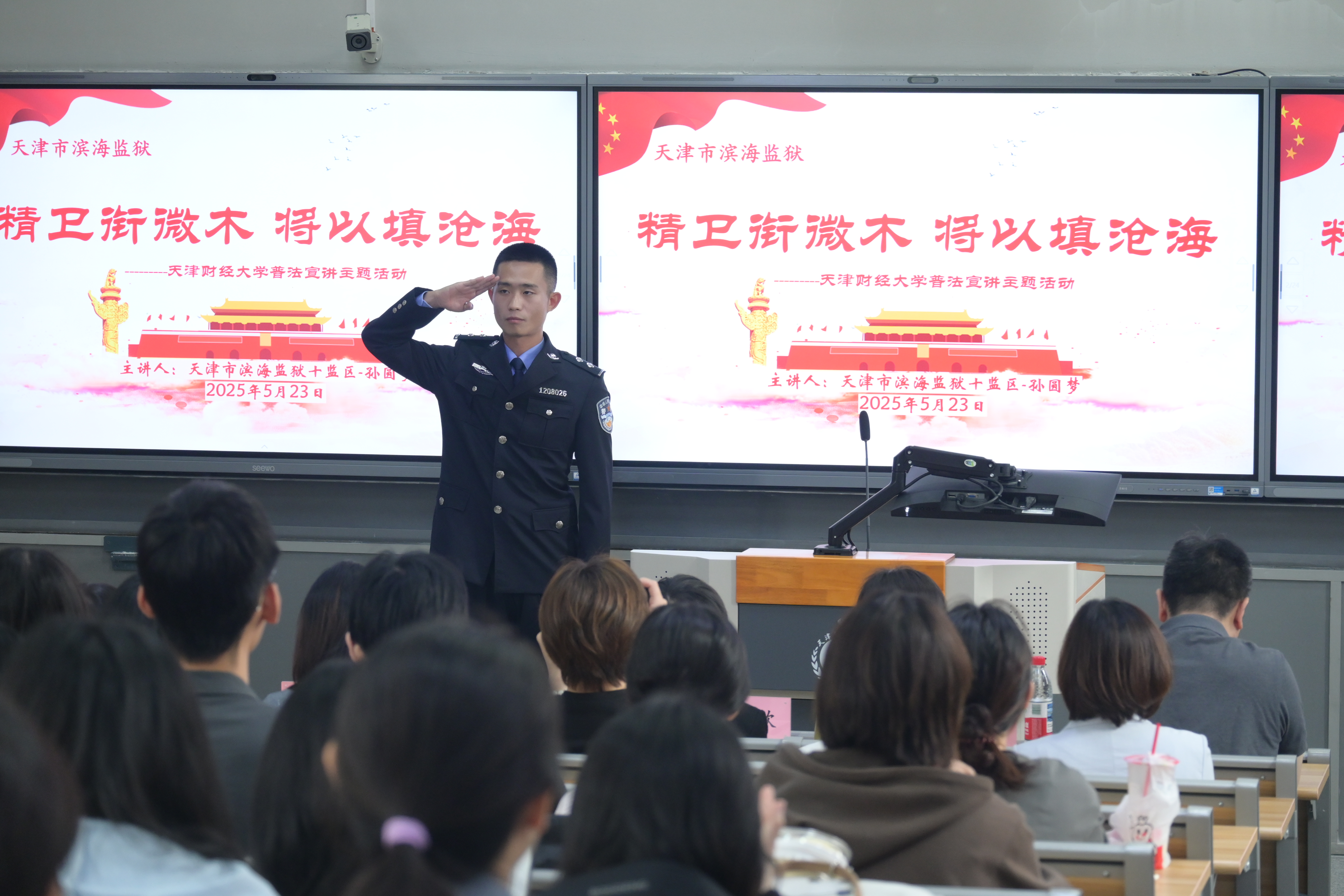 天津市滨海监狱四级警长孙圆梦以“精卫衔微木,将以填沧海”为题为师生们带来了一场精彩的法治教育与廉洁教育专题讲座。孙警官凭借深厚的专业素养与丰富的工作经验,巧妙结合一系列真实鲜活、发人深省的案例,以通俗易懂的方式,对校园内外常见的违法犯罪行为进行了深入浅出的讲解,引领师生领悟法治真谛。
