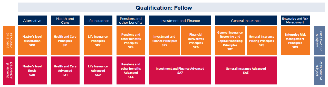 HWU精算管理专业硕士,则可以免考橘黄色部分的SP2、 SP4、SP5、 SP6、SP9。实际上橘黄色部分只要通过2门即可进入红色部分学习。