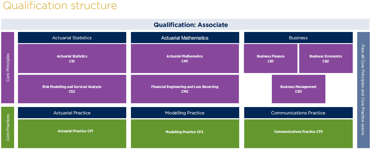 精算科学本科员工,免考科目为紫色部分的CS1、 CS2、CM1、CM2、CB1、CB2 ,共6门。